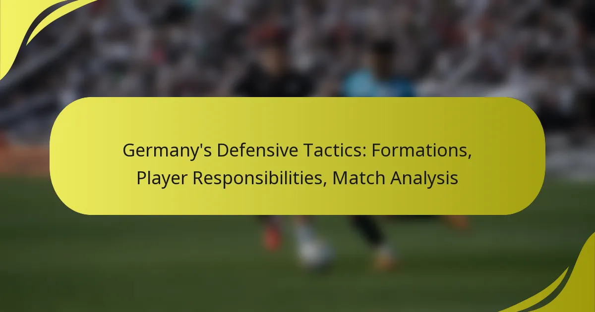 Germany’s defensive tactics are characterised by a variety of formations such as 4-2-3-1 and 3-5-2, each tailored to enhance player responsibilities and adapt to opponents. The team’s strategy emphasises clear roles, effective communication, and a structured approach to pressing, ensuring a cohesive defence. Through detailed match analysis, coaches refine these tactics by assessing player performance and making necessary adjustments for future games.